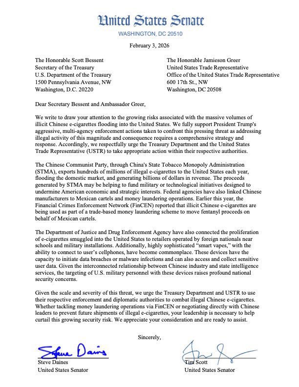 I joined with a group of Senate colleagues in urging Treasury and USTR to stop these illegal shipments.