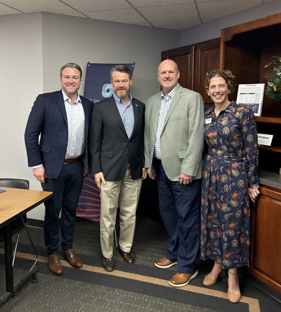 Senator Young with Vice President of the Great Lakes Region at the U.S. Chamber of Commerce Kevin Courtois, President & CEO of Greater Fort Wayne Inc. John Urbahns, and President & CEO of Indiana Chamber Vanessa Green Sinders.